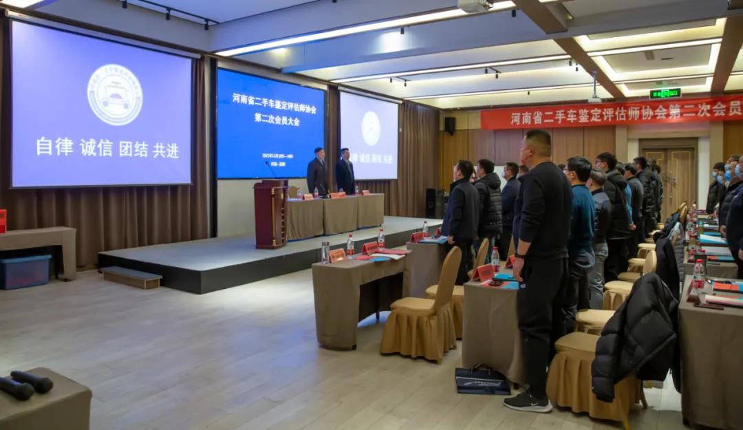 2021年12月18日,古都洛陽,風和日暄,河南省二手車鑒定評估師協(xié)會第二次會員代表大會暨換屆大會在這里召開,來自全省內各地市50多家機動車鑒定評估機構會員代表參會。全體與會人員起立奏唱國歌,大會在莊嚴的國歌聲中拉開序幕。