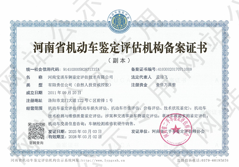 河南寶琪車(chē)輛鑒定評(píng)估技術(shù)有限公司